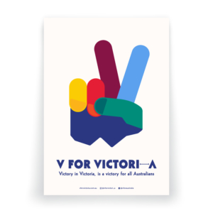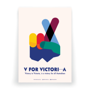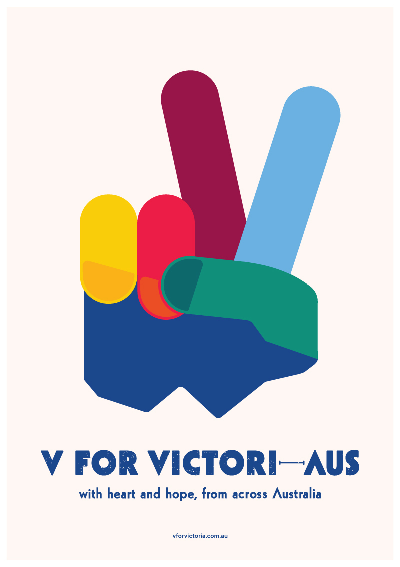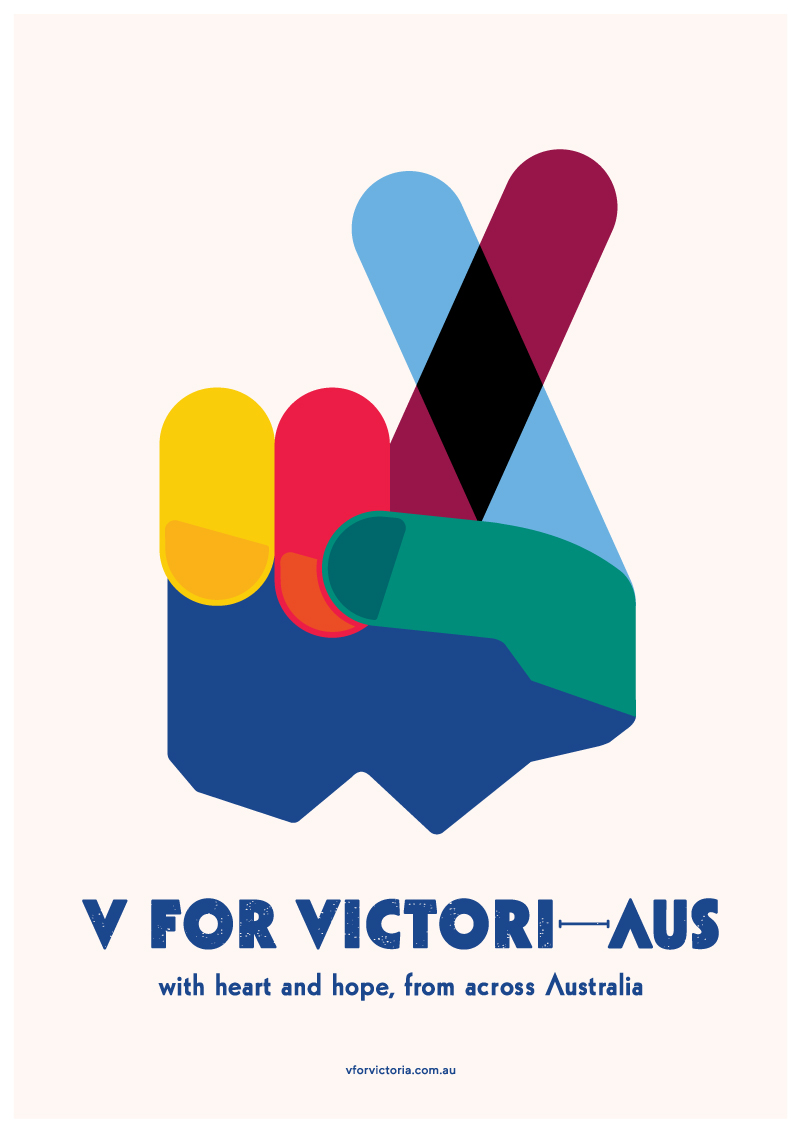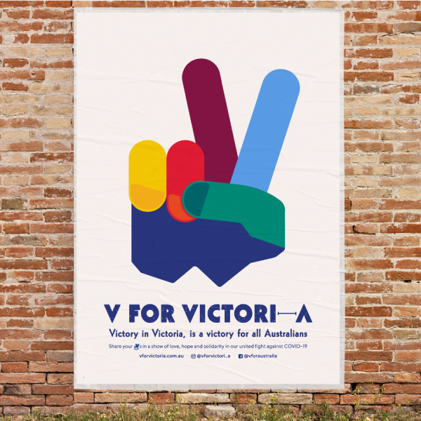 The creation of ‘V for Victori (Victori-a, Victori-aus)’, which up-cycled the original Winston Churchill ‘V for Victory’ (and peace symbol of the sixties and seventies) was repurposed to represent our united fight for victory against COVID-19 and its greater flow-on effects in our communities across Victoria, Australia and beyond.